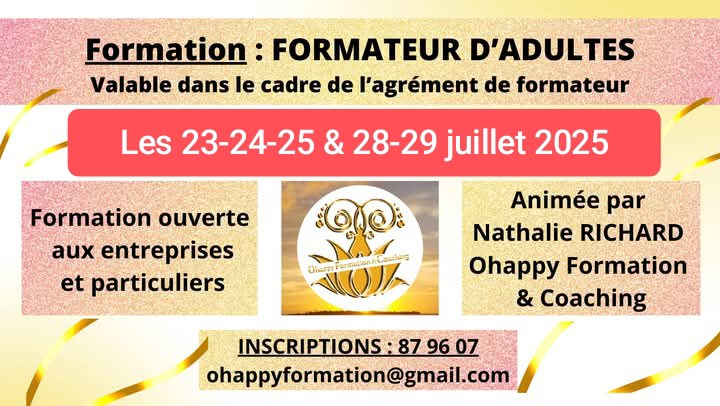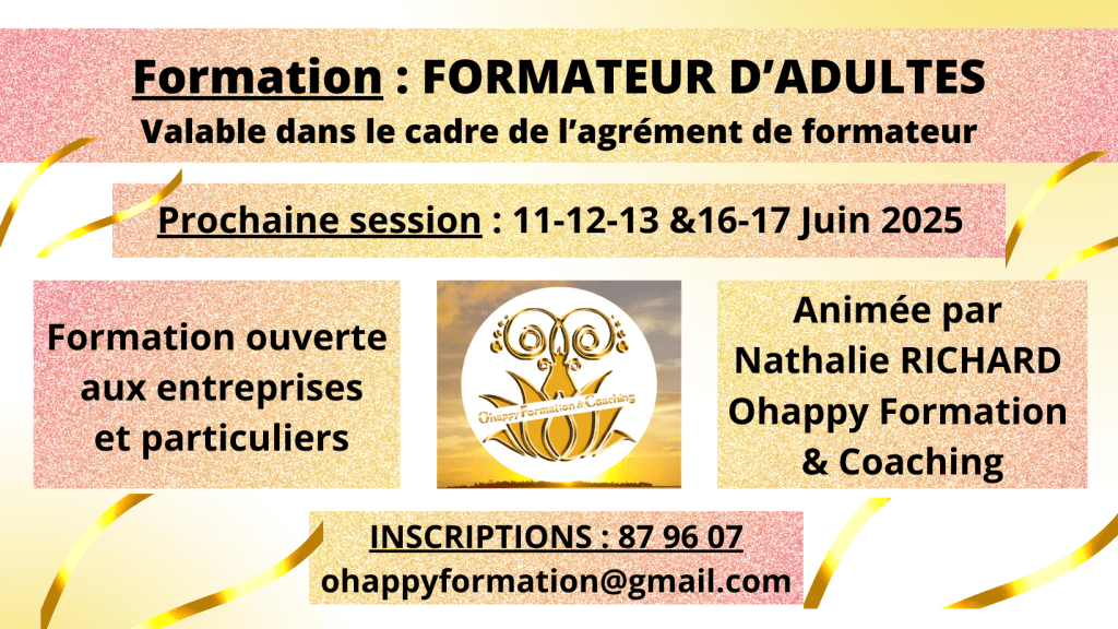 ✨ Ohappy Formation & Coaching vous propose une nouvelle session pour sa formation professionnelle 🧑🎓Formateur d’adultes🧑🎓validée par la DTEFP, dans le cadre de l’agrément de formateur en NC