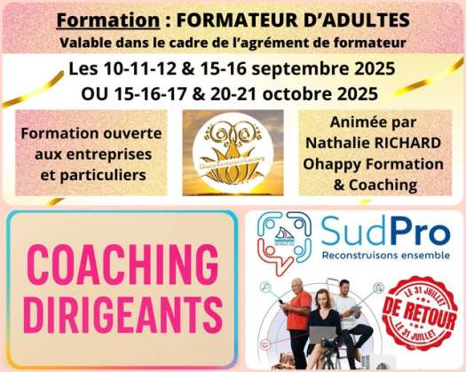 🤩 Pour toute demande de devis, RDV sur la plateforme SUDPRO, enregistré sous Nathalie RICHARD, ou me contacter ☎️ 87.96.07 🌀 ohappyformation@gmail.com 🌏 http://www.ohappyformation.com